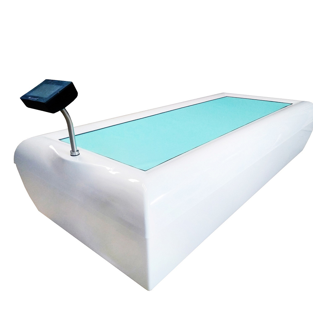 Ванна АКВАСПА оборудована поворотным цветным сенсорным ЖК дисплеем, с помощью которого осуществляется программирование всех режимов и непосредственно управление ходом процедуры, как медицинским персоналом, так и самим пациентом.